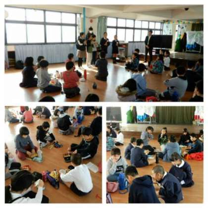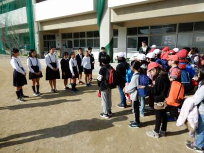 交流会の最後にお互いに今日の交流のお礼を言って記念写真を撮り、交流会を終えました。初級学校の友だちが、校門まで手を振って見送ってくれたのが印象的でした。