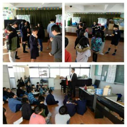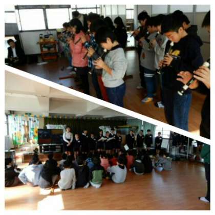 まずは、初級学校の友だちから学校の紹介をしてもらい、矢田北小学校の5年生からはアリランをリコーダーで演奏しました。