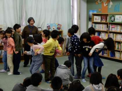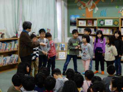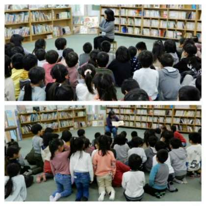 2月6日(水)の20分休憩は、読書ボランティアの方々による本の読み聞かせの時間です。今日は、「まゆとおに」「おしくらまんじゅう」の2冊でした。