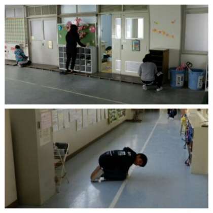 3月18日(月)卒業間近の6年は、6年間お世話になった校舎をきれいにしようと、校内清掃に取り組み、廊下や壁などの汚れを一生懸命落としていました。