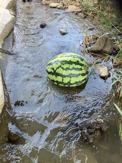 おやつの時間! 川の水で 冷えたスイカ!