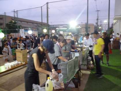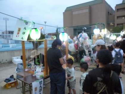 23日の夕方「矢田北 夜店と花火大会」が、地域の方々のご協力により、開催することができました。夜店は、くじびきやスーパーボールすくい等、子どもたちが喜ぶ出し物をはじめ、フランクフルトや焼きそば、かき氷等、おいしい食べ物でいっぱいでした。