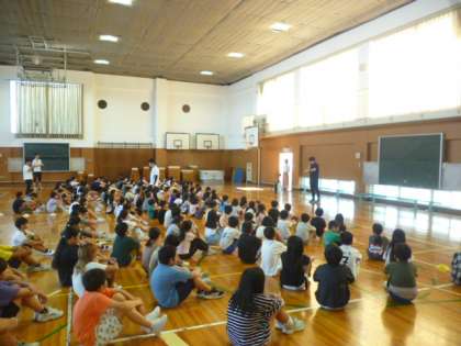 1923年9月1日に発生した関東大震災の教訓を忘れないため、また台風が多く発生するシーズンとなるため「防災の日」となり、防災意識の大切さを教頭先生がお話してくれ、皆さん真剣にお話を聞いていました。