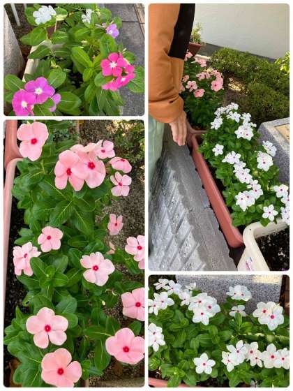 正門の近くにきれいな花が咲いています。本校、管理作業員が世話をしています。この花はニチニチ草です。とてもきれいですね。