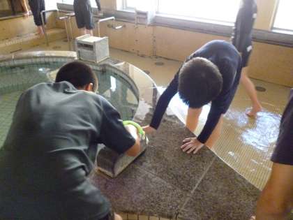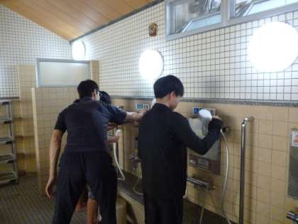 風呂の水を抜いた後、たわしでしっかりとこすりました。また、鏡やシャワーなどの汚れもきれいに清掃しまた。