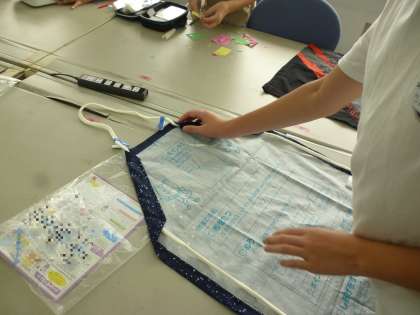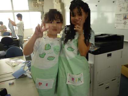 家庭科で製作しているエプロンが完成しました!!とてもお似合いですね。また、家でもお手伝い頑張ってくださいね。(9月22日 記事)
