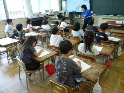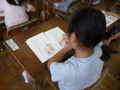1年生の国語の学習です。音読リレーをしています。元気な声でしっかりと音読できるように頑張っています。