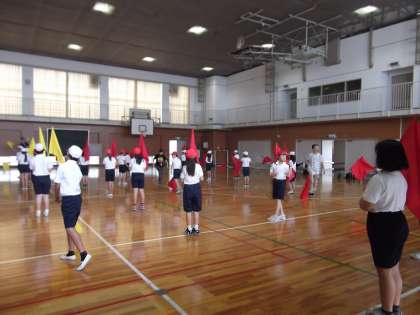 5・6年生は、フラッグを使い、団体競技の練習を行いました!