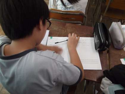 5年生の算数の時間です。4と6の最小公倍数について考えていました。終わった後にはドリルでしっかり復習しています。
