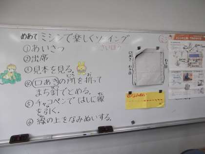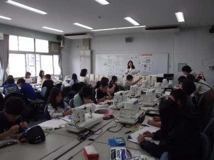 5年生の家庭科です。「ミシンで楽しくソーイング」でナップザック作りを進めています。