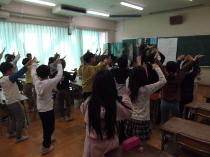 2年生の総合の時間です。ソンセンニムから「アプロ」の曲を教えていただきました。みんな元気よく歌っていました。振り付けもかっこよかったです。