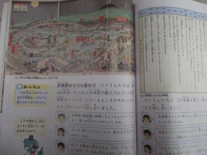 4年生の社会科の学習です。大阪の伝統的な祭り「天神祭り」について調べました。