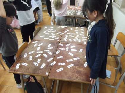 2年生の算数です。「九九」のまとめとして、カード取りをしました。
