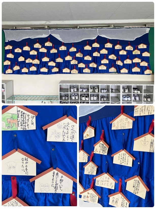1月の玄関掲示は、中学年(3・4年生)が担当しました。