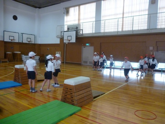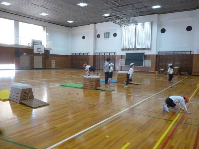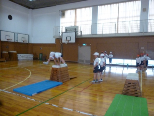 4年生の体育「とびばこ」の学習を進めています。タイミングよく、開脚とびをしていました。手のつく位置に気をつけて跳びましょう。