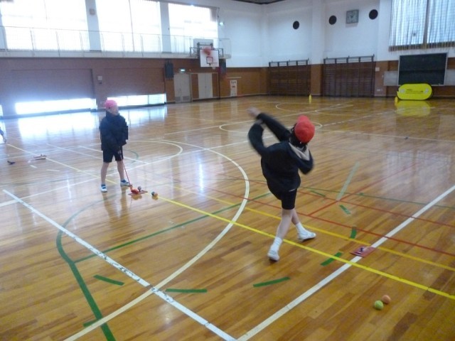 トップアスリート夢・授業を行いました。スナップゴルフの講師の方に来ていただきました。プロのショットは、迫力があって確実です。それぞれが、目標に向かってパットやフルョットを経験しました。(5年生も夢・授業を行いました)(2月3日 記事)