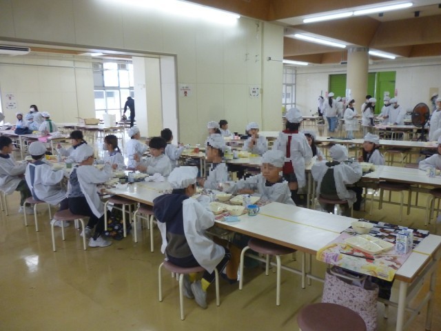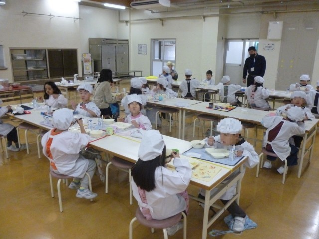 ランチルームのエアコンの設置工事が終了しました。16日からランチルームでの給食が始まりました。