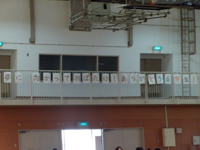 児童会が中心となって、卒業おめでとう集会が開かれました。もうすぐ卒業する6年生に「夢にむかってはばたけ!!ありがとう6年生!!」をテーマにそれぞれの学年が、歌や呼びかけをしました。なかよし班(たてわり班)でメッセージも贈りました。(3月6日 記事)