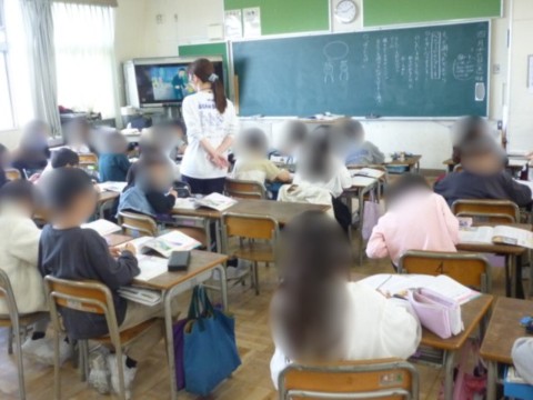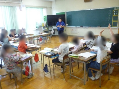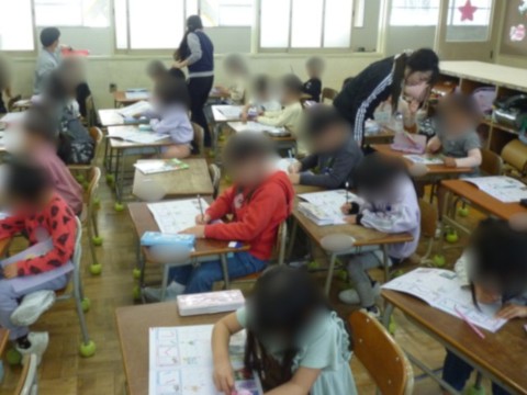 2年生は国語科の学習「風のゆうびやさん」の学習をしました。登場人物のアゲハ蝶さんと郵便屋さんの場面について考えました。教室の机をコの字型に配置していたので、発表しているお友達の表情や仕草をしっかりとみながら聞くことができました。