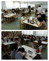 高学年は、はじめに自習ルームで静かに過ごしました。6年生は、歴史新聞をていねいに...