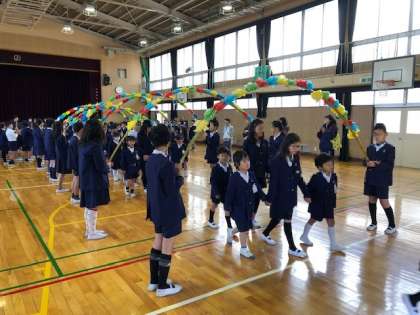 4月11日(木)に「入学を祝う会」がありました。1年生は在校生のみんなと初めて出会う場でしたが、元気よく声をそろえて「よろしくお願いします」と言えました。6年生と一緒に手をつないで花道を通る姿が嬉しそうでした。