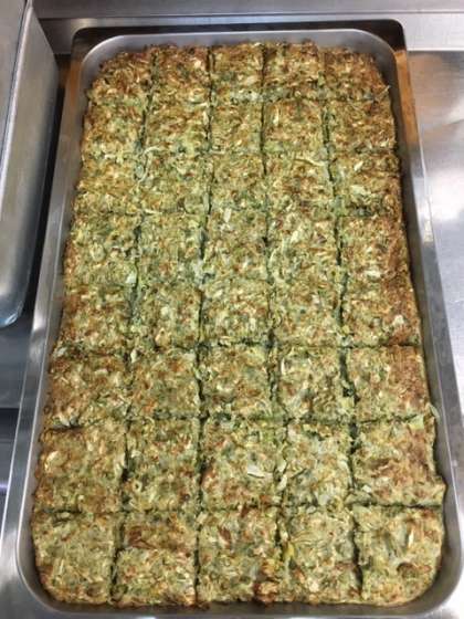 おこのみ焼きはキャベツと青ねぎにたまご、とろろいも、青のり、かつおぶしで味をつけ、オーブンで焼いています。