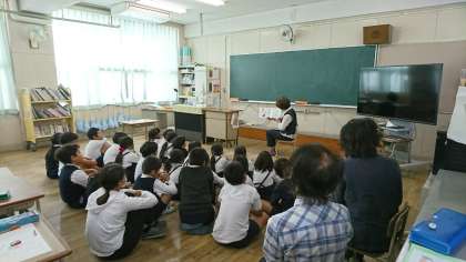 10月16日(水)2、3時間目に東住吉図書館のボランティア「おはなしたまてばこ」のみなさんが、絵本の読み聞かせに来てくださいました。