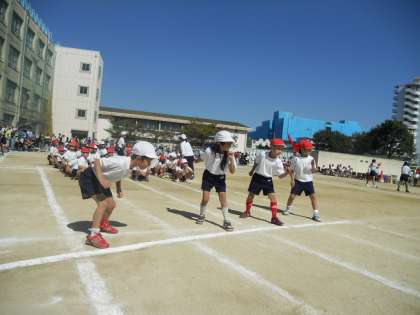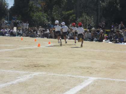 2年生の個人走は、直線ではなくコーナーを使って走ります。カーブをうまく走るにはどうすればよいのかな。