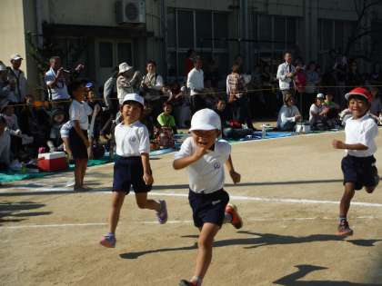 今年の1年生は、直線ではなくコーナーを含むかけっこに挑戦しました。みんな笑顔でゴールしていたのが印象的でした。