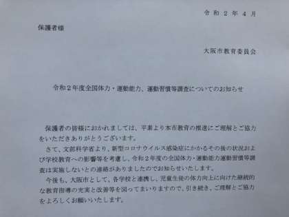 令和2年度全国体力・運動能力、運動習慣等調査の中止について(通知)