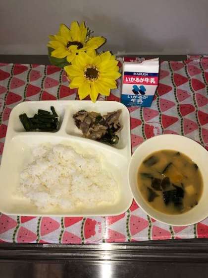 今日の主菜は、疲労回復効果のある豚肉と、さわやかな辛みで殺菌力があり胃の調子を整えてくれるしょうがを組み合わせた、豚肉のしょうが焼きです。疲れた体を元気にしてくれるパワフルメニューでした。