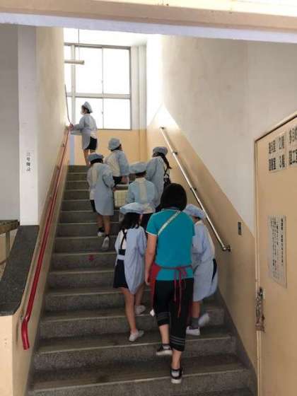 2学期が始まりました。給食当番は服装整え、しっかりと手洗いをして配膳をしていました。