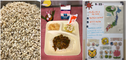 今日の「大豆入りキーマカレーライス」は米粉で作られたルウを使用しています。