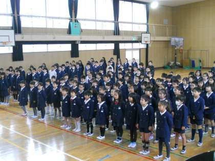 校長から「湯里小学校の3つの約束をしっかり守ろう」、「本をたくさん読もう」、「心のブレーキをかけよう」の3つの話をしました。生活指導の先生からも、3つの約束を全校児童で守ること、自転車の乗り方の注意がありました。大きな声でしっかり校歌を歌い今年の頑張りを期待できます。