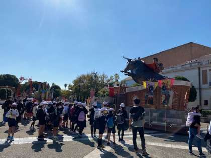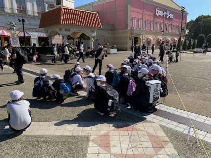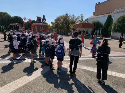 担任の話をしっかり聞いた後、活動班に分かれて園内を周ります。