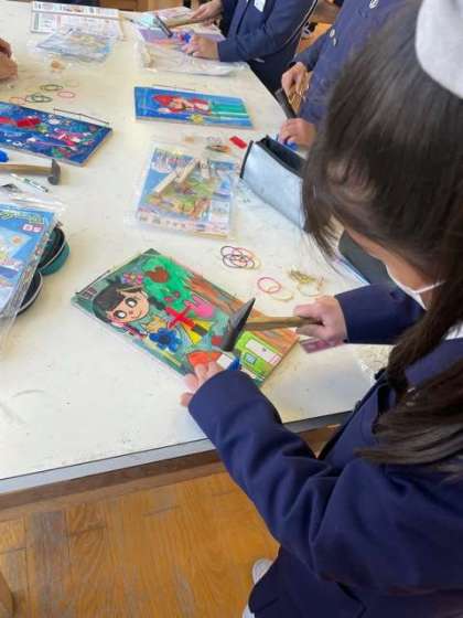 図工科の学習で金づちを使って「コリントゲーム」を作りました。