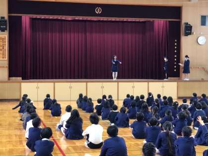 児童集会では、集会委員会の児童によるゲームが行われました。