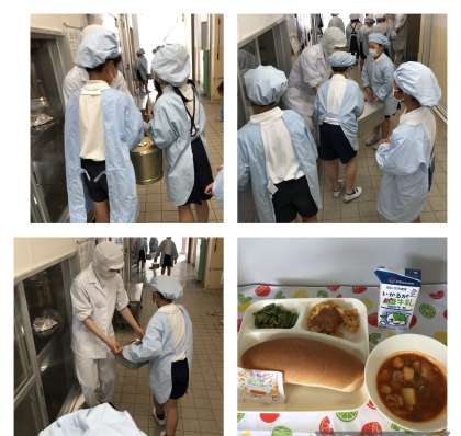写真は4年生の給食時間です。