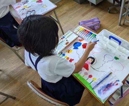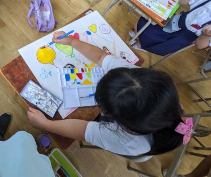 2年生になってから、個人絵の具の学習を始めています。新しい画材にわくわくしながら、学習しています。
