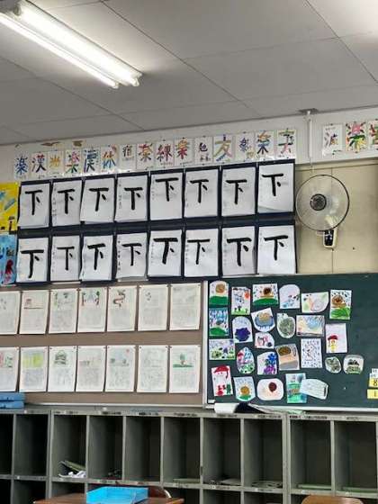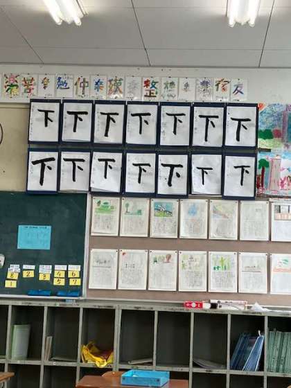1文字目は「一」で一画でしたが、2文字目は「下」三画。ゆっくり丁寧に...まだ2文字目にしては、なかなかの出来!?