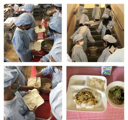 だしこんぶとけずりぶしでとった出汁を使ったカレー丼です。児童に人気の献立です。