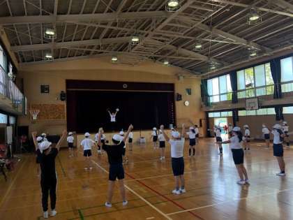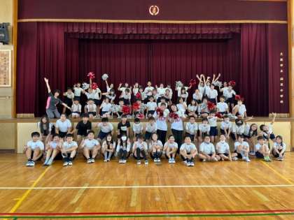今年度はチアダンスの講師の方にお越しいただき、5・6年生が力強く踊りました。
