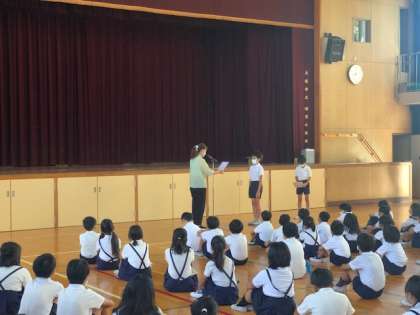 4日(火)の朝会にて、絵画作品入賞の賞状が授与されました。