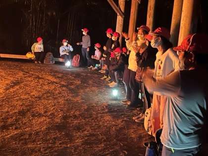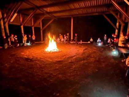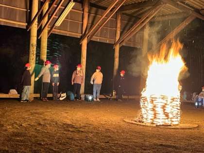 ファイヤーを囲んで、みんなでスタンツの時間です。