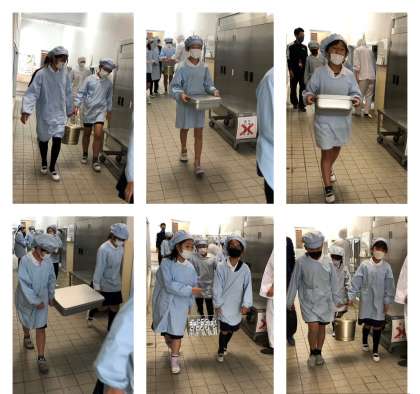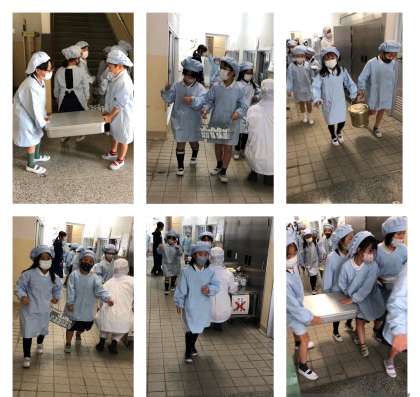 写真は各学年の給食当番のようすです。