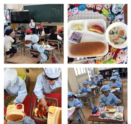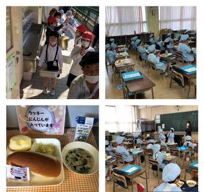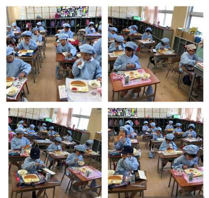 写真は1年生の給食時間です。