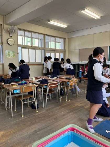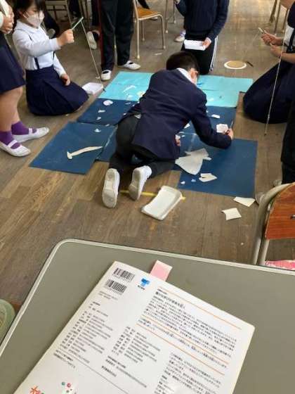 理科の学習を生かしたおもちゃを作り、そのおもちゃの店を開店。半分ずつ店番とお客さんに分かれて遊びました。