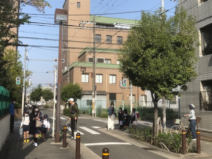 学校の行き帰りには、地域の方、見守り隊の方や保護者の皆様が、湯里小学校の子どもたちの安全を見守ってくださっています。