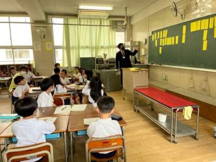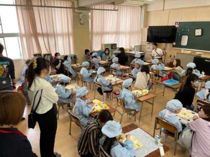 1年生は給食参観、2年生は国語の言葉集め、3年生は国語辞典の使い方の授業でした。