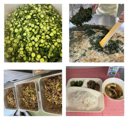 お隣の国、韓国・朝鮮の料理献立です。牛肉に、しょうが汁、にんにく、コチジャンなどの調味料で下味をつけて、たまねぎ、にらを混ぜてオーブンで焼いています。